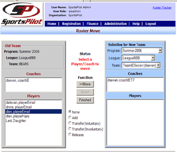 Once you have completed the player move, select the Finish button to return to the Registration screen.