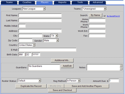Note: Administrators can also add a new player by selecting the Players tab