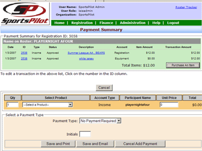 Administrators may enter additional transactions to a particular roster record by using the Add A