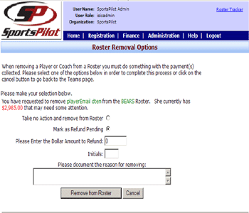 Note: Selecting the ‘Take no Action and remove from Roster’ option when there is a fee related